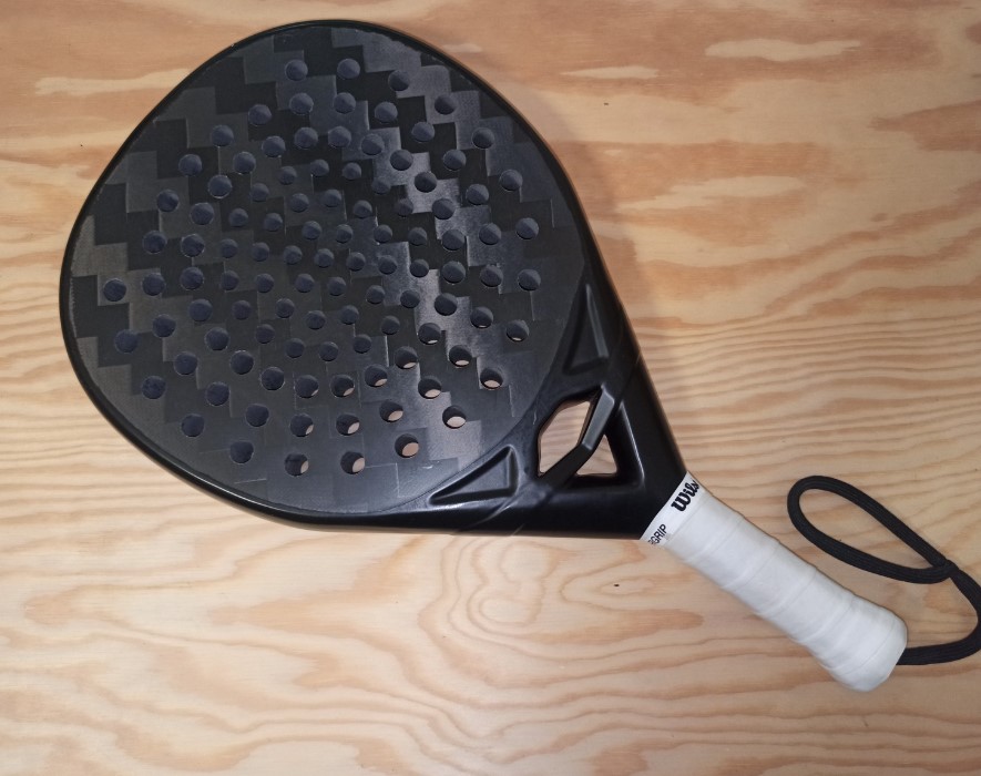 Frame uses a tough polymer in the perimeter zone to better tolerate repeated impacts with glass/fence — a common failure mode in padel.